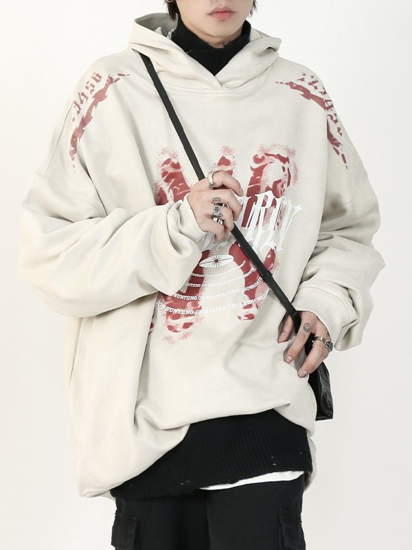 Sudadera con capucha de manga larga y estampado holgado para hombre