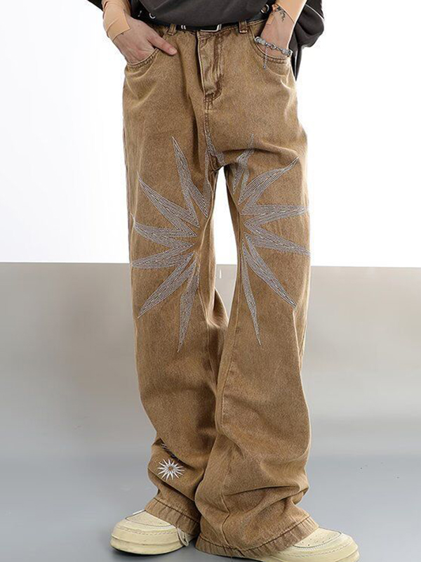 Vaqueros holgados con bordados vintage para hombre