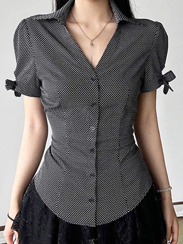 Camisas de manga corta con solapa y pajarita estilo vintage