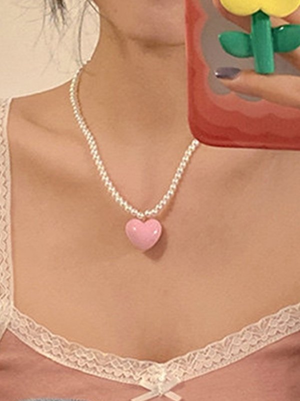 Collar de perlas de imitación con dije de corazón de acrílico