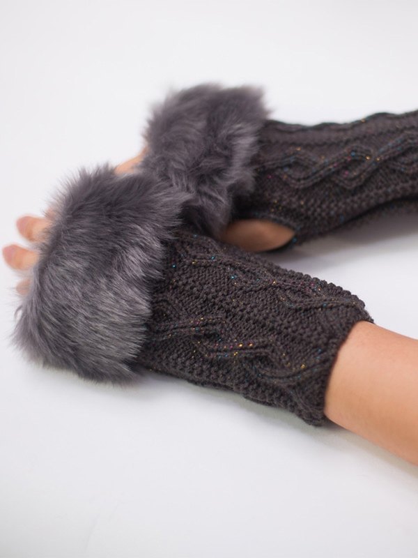 Guantes tejidos sin dedos con ribete de piel sintética