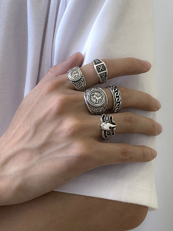 Anillo de plata grabado de 5 piezas para hombre