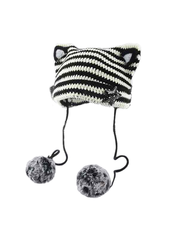 Gorro con rayas y diseño de gato