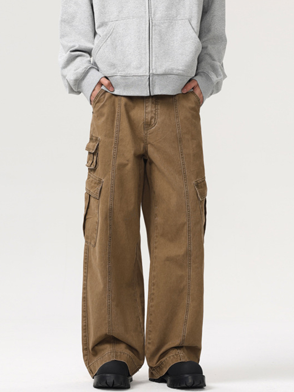 Pantalones cargo con cordón y múltiples bolsillos de pana vintage para hombre