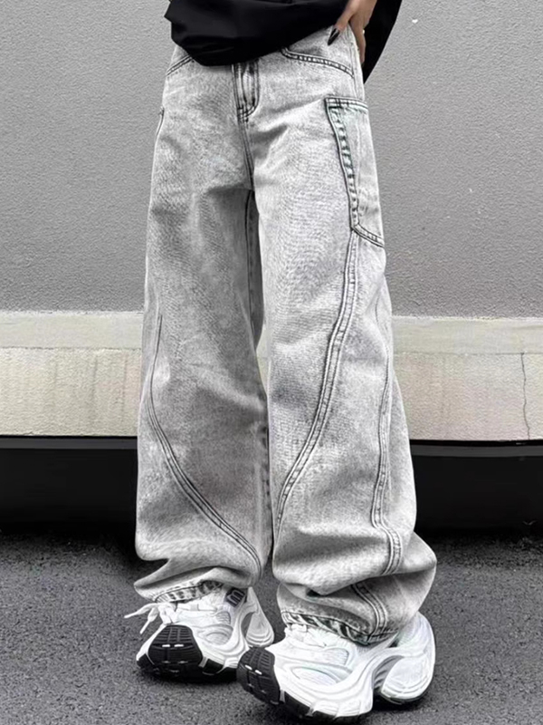 Jeans acampanados con diseño de borde sin rematar y perneras anchas