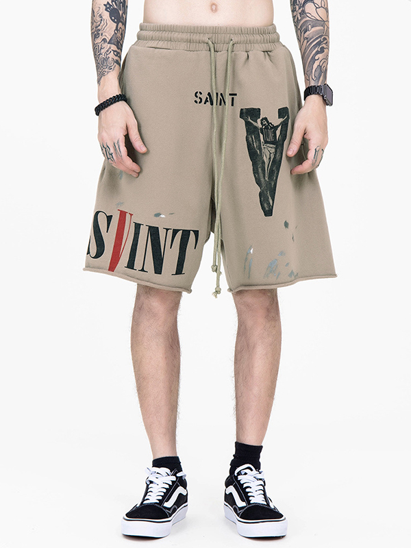 pantalones cortos deportivos casuales con estampado de letras para hombre