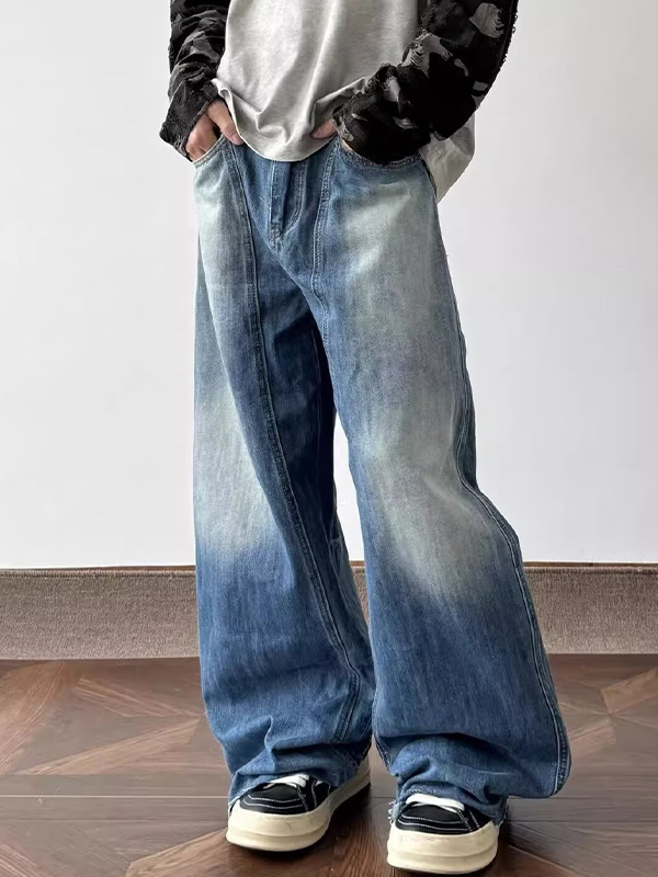 Vaqueros holgados con piernas anchas, color azul, holgado, retro japonés