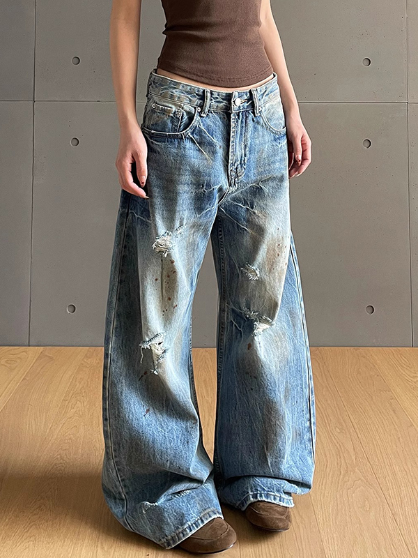 Jeans Boyfriend con manchas de barro amarillo y agua de la industria pesada