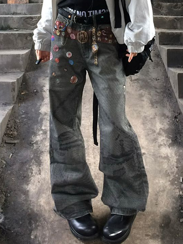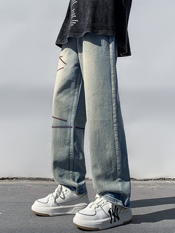 Vaqueros rectos holgados con parches de estrellas para hombre