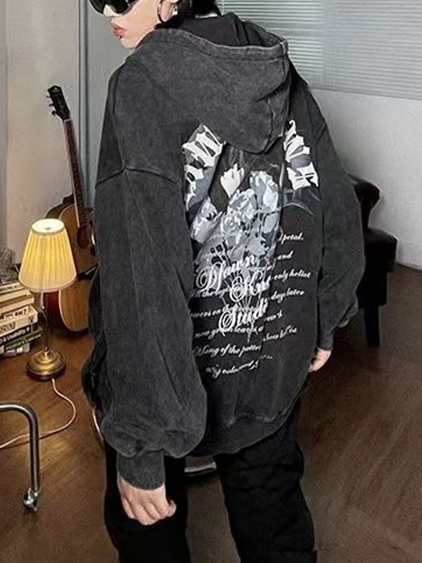 Sudadera con capucha extragrande con cremallera completa y estampado Hip Pop para hombre