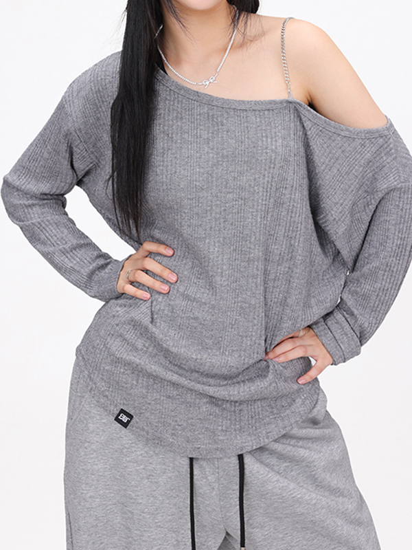 Jerseys de punto de manga larga con un hombro descubierto y sin espalda