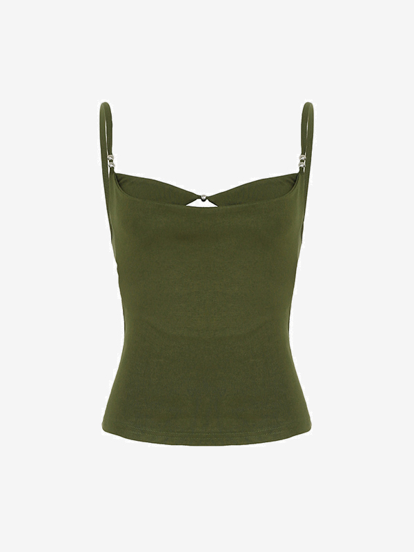 Top de tirantes de encaje de malla con botones delanteros vintage