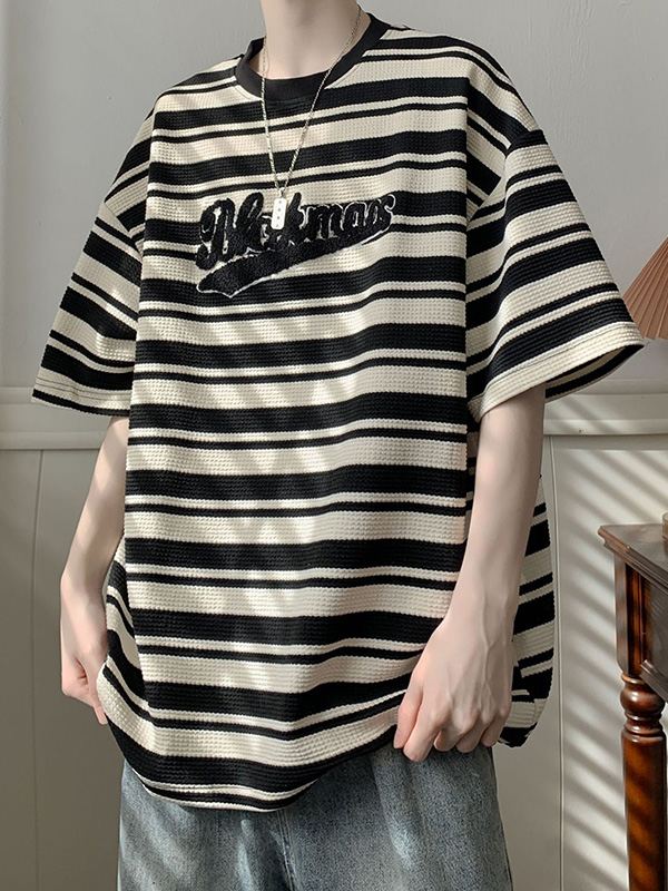 Camiseta extragrande de manga corta con estampado de rayas para hombre