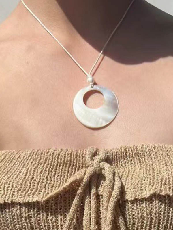 Collar con colgante de concha redonda ahuecada