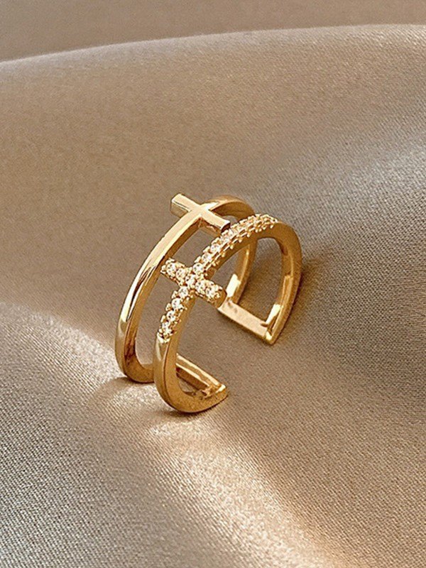 Anillo de puño de esmalte con adorno de diamantes de imitación