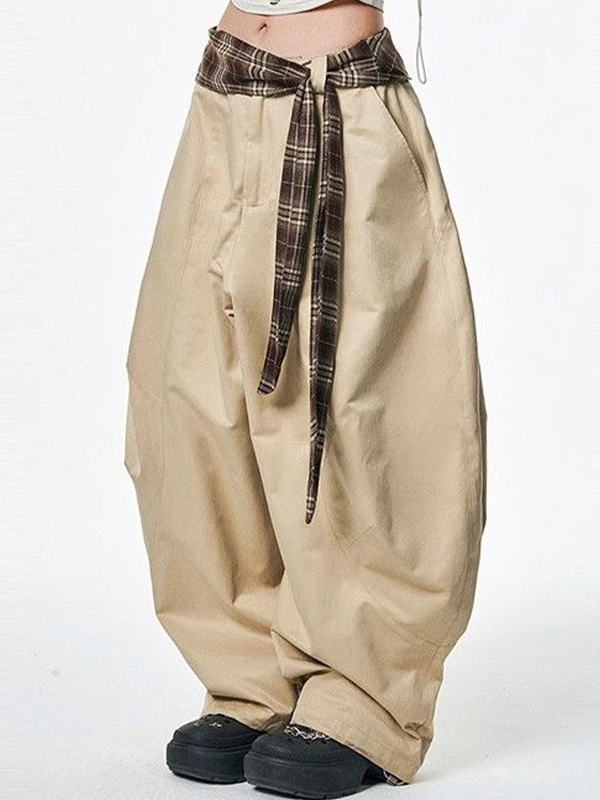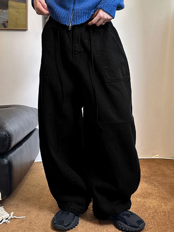 Pantalones de trabajo informales de cintura alta, multibolsillos, con cordón, holgados y de pierna recta.