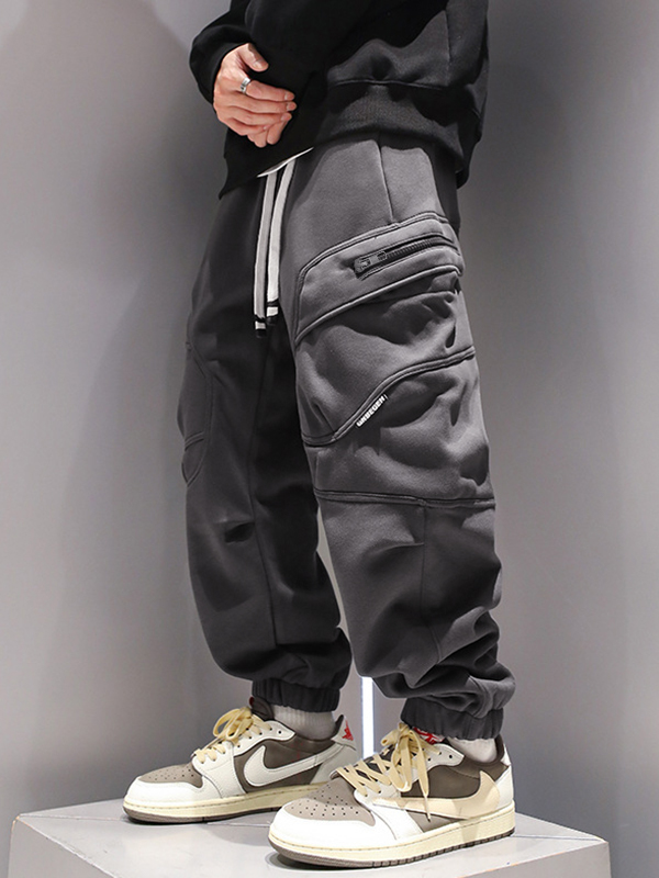 Pantalones cargo de pana con bolsillos grandes y cordón ajustable para hombre