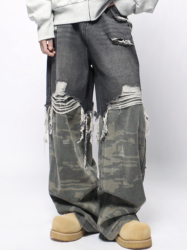 Vaqueros holgados con ribete crudo desgastados Street para hombre
