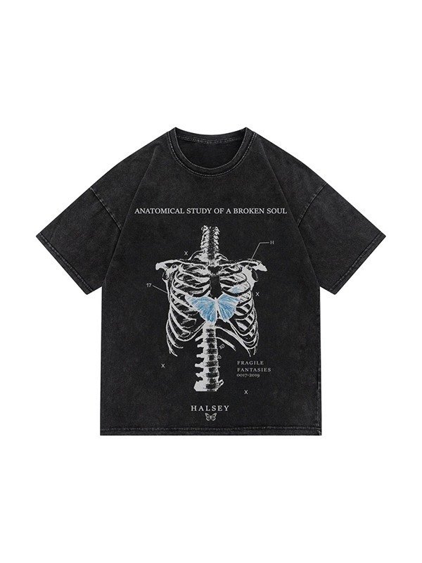 Camiseta extragrande de manga corta con estampado de calaveras viejas lavadas para hombre