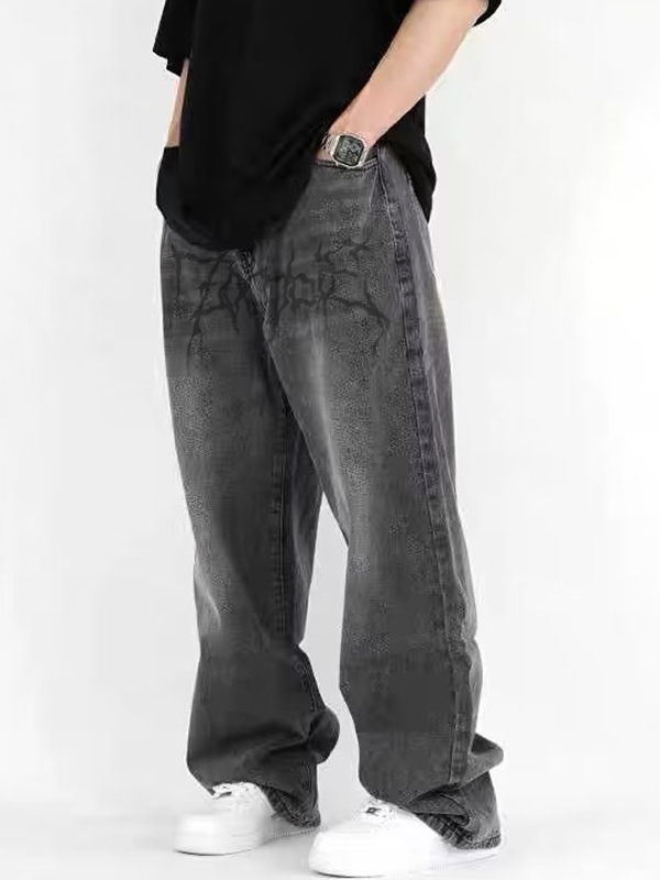 Vaqueros holgados con estampado craquelado lavado para hombre