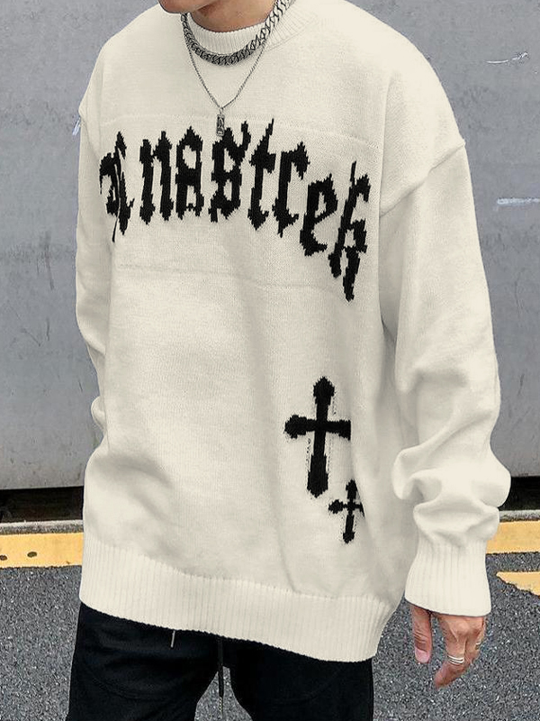 Suéter extragrande con estampado de letras cruzadas vintage para hombre