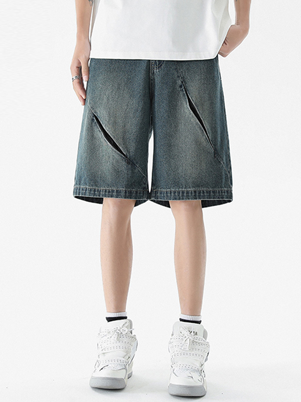pantalones cortos de mezclilla rectos con cremallera suelta para hombre
