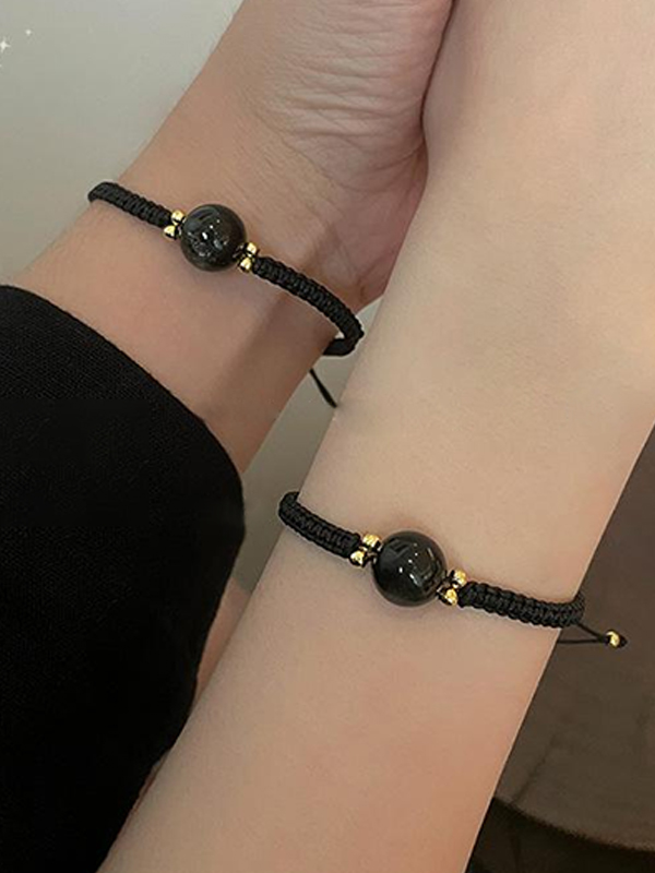 Pulsera trenzada con empalme de obsidiana estilo pareja