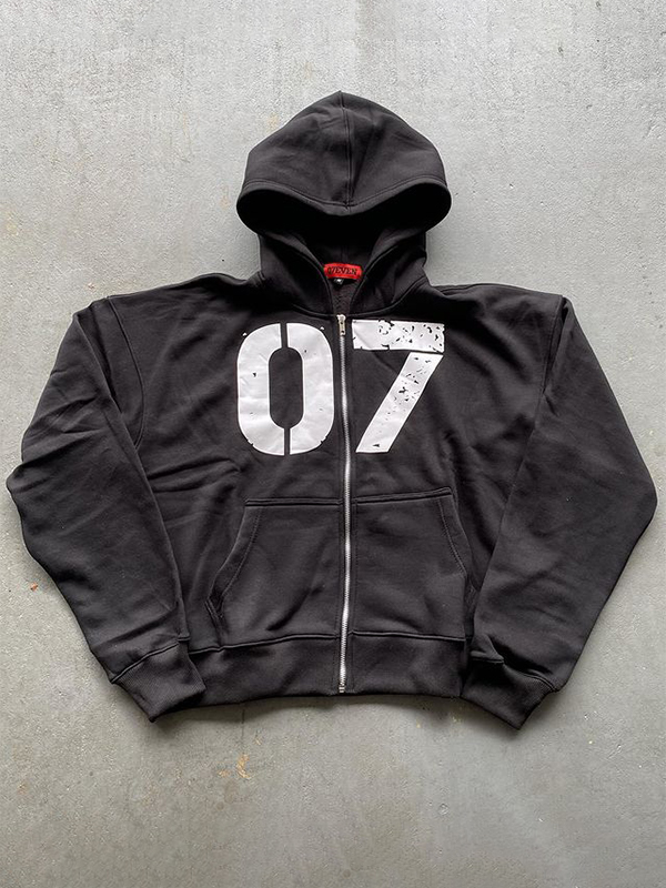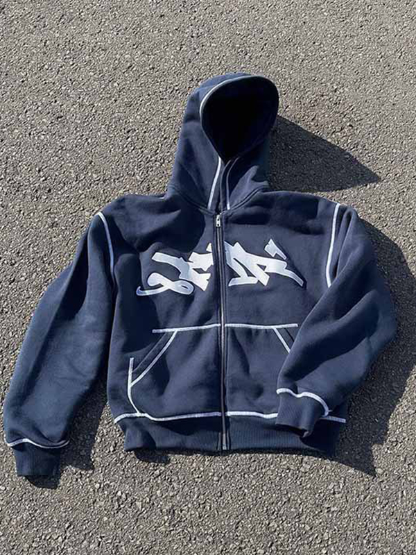 Sudadera con capucha extragrande con cremallera completa y estampado Hip Pop para hombre