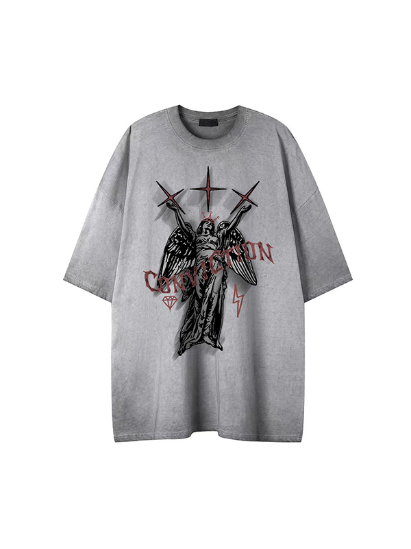Camiseta extragrande de manga corta con estampado retro para hombre