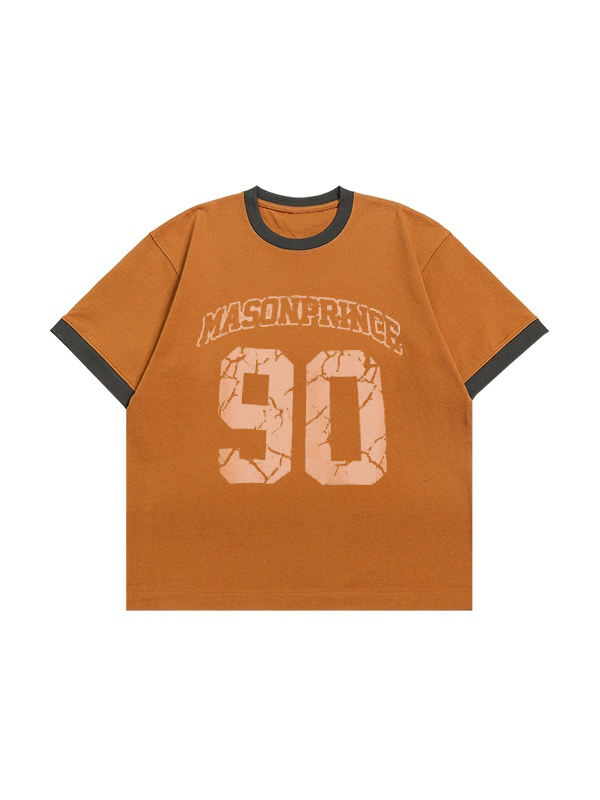 Camiseta de manga corta con estampado de letras de ante vintage para hombre