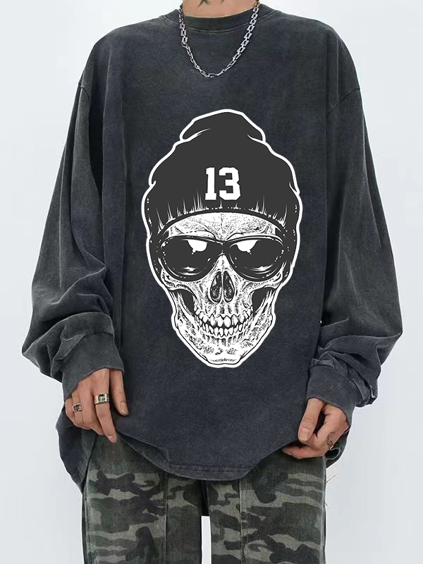 Camiseta extragrande de manga corta con estampado de calaveras viejas lavadas para hombre