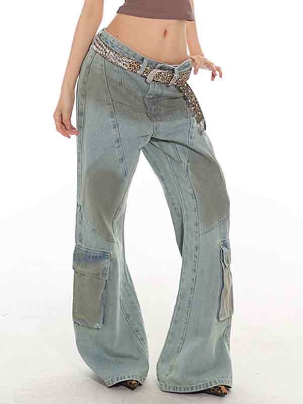Pantalones cargo con múltiples bolsillos y lavado pesado