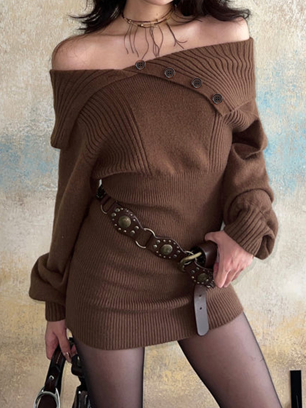 Minivestido de punto con cuello de solapa y hombros descubiertos