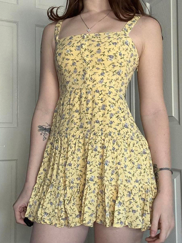 Minivestido con estampado floral dulce y fresco que se ajusta a la cintura