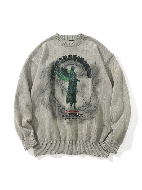 Suéter tipo jersey con gráfico de estatua de relámpago para hombre