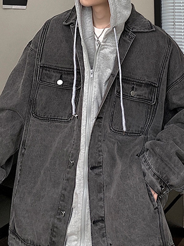 Sudadera vaquera extragrande de dos piezas falsas para hombre