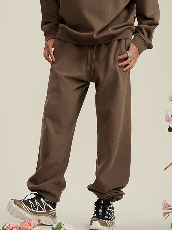 Pantalones deportivos básicos de color liso con pies atados para hombre