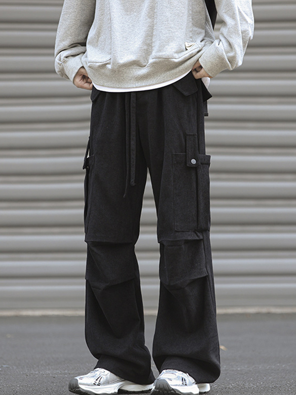 Pantalones cargo colgantes con bolsillo fruncido de pana vintage para hombre