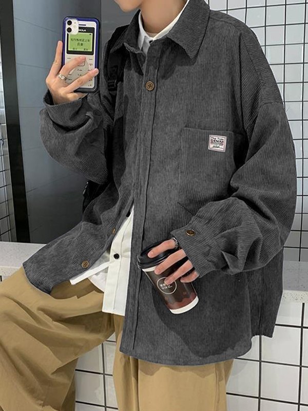 Longitud de la manga: Manga larga< br />Descripción: Estas camisas de manga larga confeccionadas con un cómodo tejido de pana, cuentan con un bolsillo grande en la parte delantera del pecho, con una silueta relajada, hombros caídos y diseño de cierre frontal con botones.