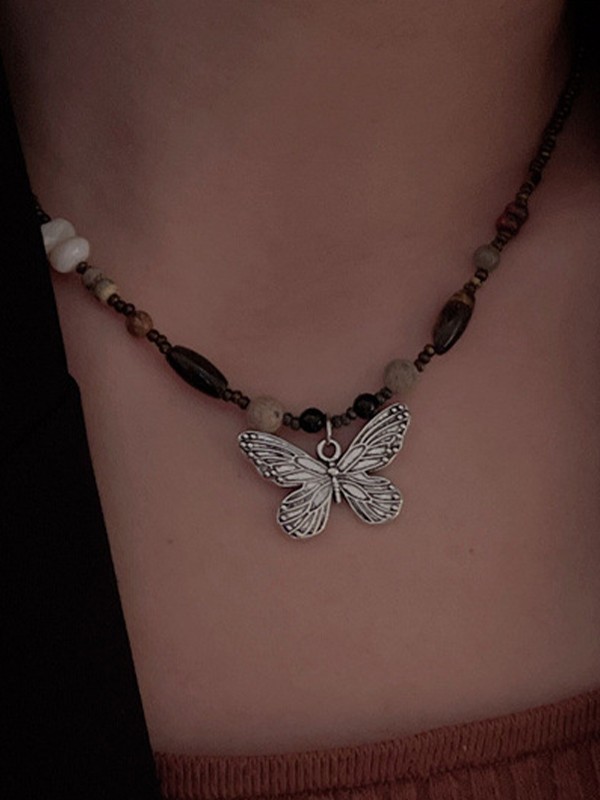 Sé el primero en valorar “Collar de mariposa de piedra con cuentas vintage”