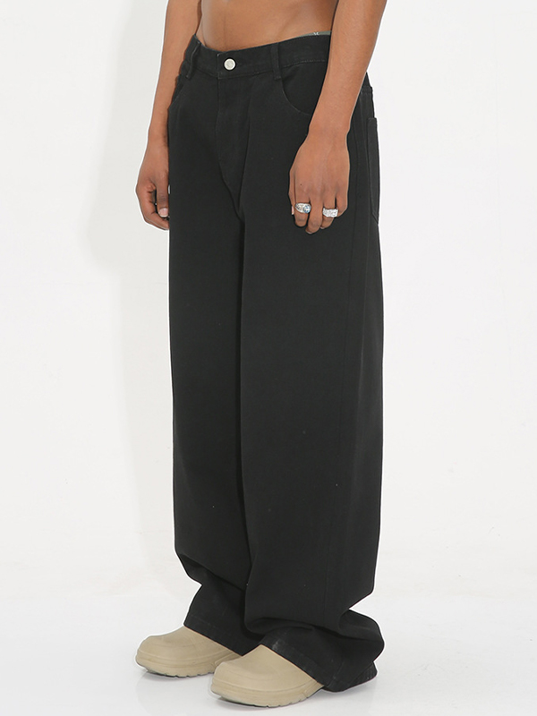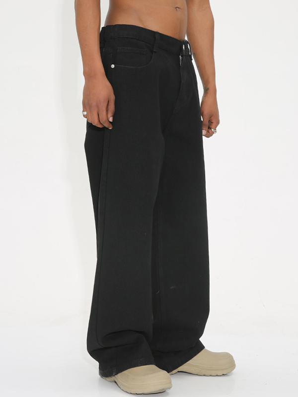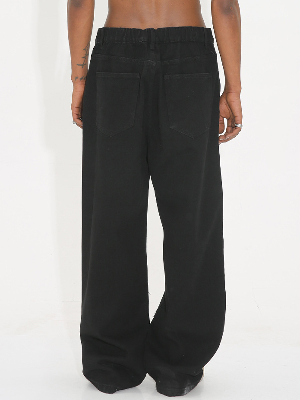 Vaqueros holgados con cintura elástica y lavado negro para hombre