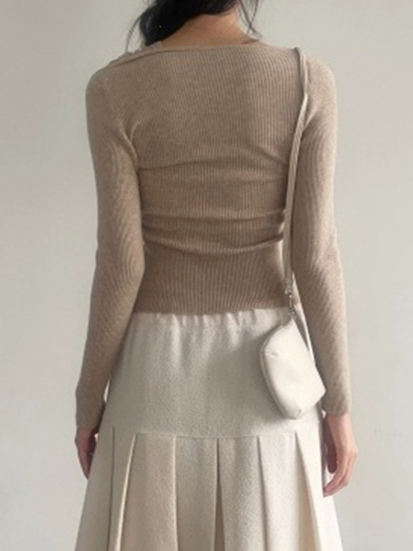 Composición del tejido: fibra de poliéster. Corte: entallado. Escote: cuadrado. Largo de manga: manga larga.