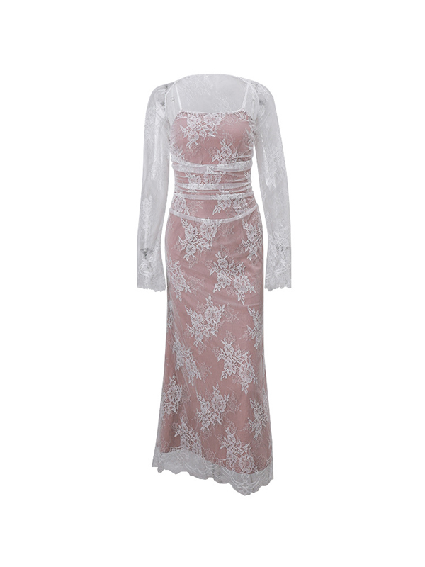Vestidos largos con tirantes y manga larga con chaleco de temperamento